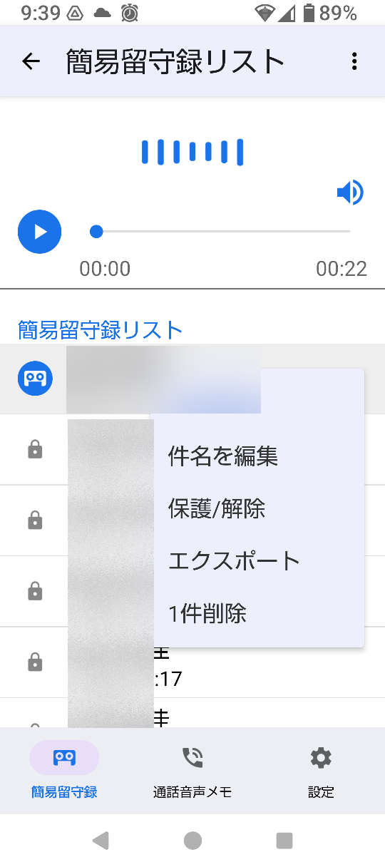 2個下の「録音リスト 電話に出る前確認での録音と通話録音の再生、削除、保護/解除」をタップ。